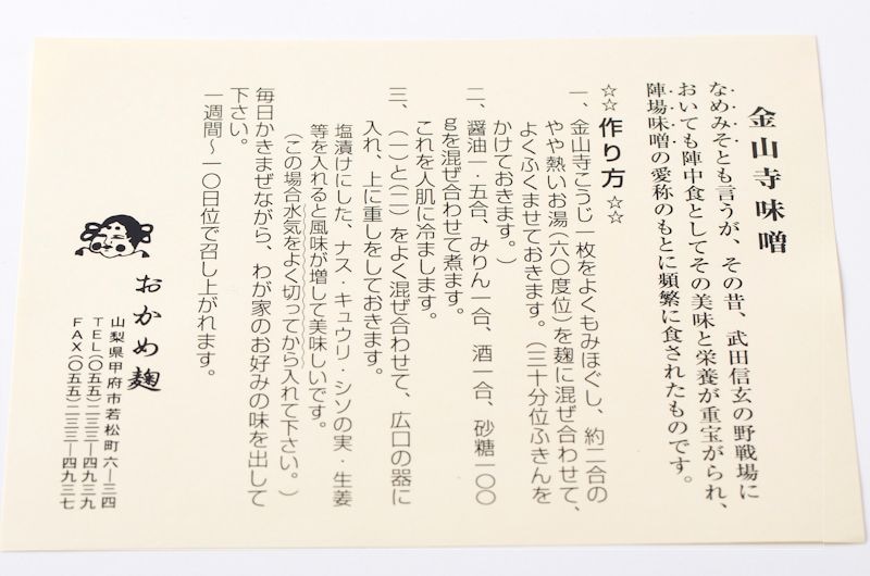 手作り用の金山寺麹は東京では見かけないので、おかめ麹さんで取寄せできて本当に嬉しいです!